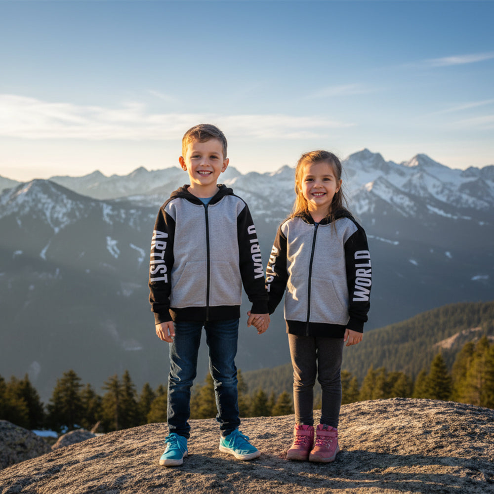 L&S Wide Famous & Sleeves Print Black & Grey Terry Zipper Hoodie 14373