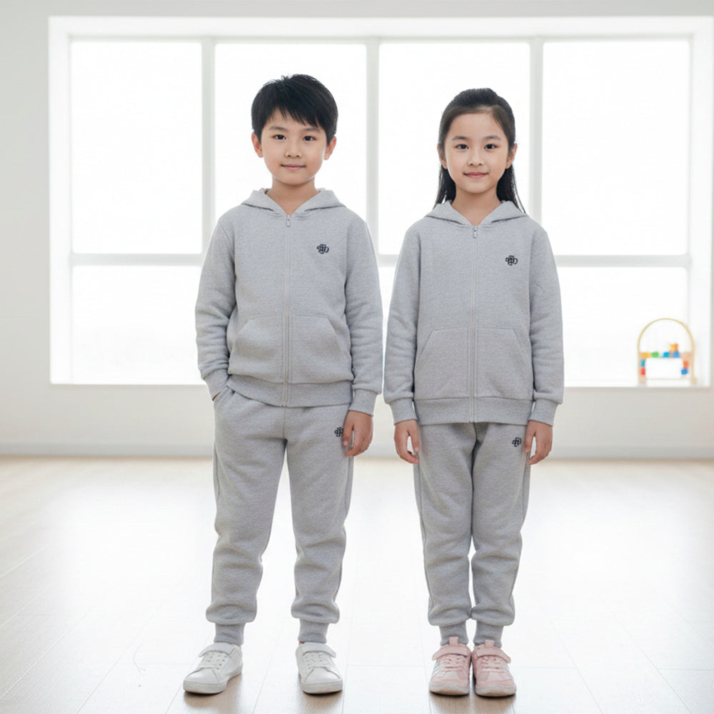 LE LTD Embroided Textured Grey Fleece Zipper Hoodie With Trouser Tracksuit 14722