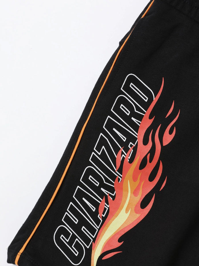 LFT Pokeman Charizard Print Black Terry Shorts 12901