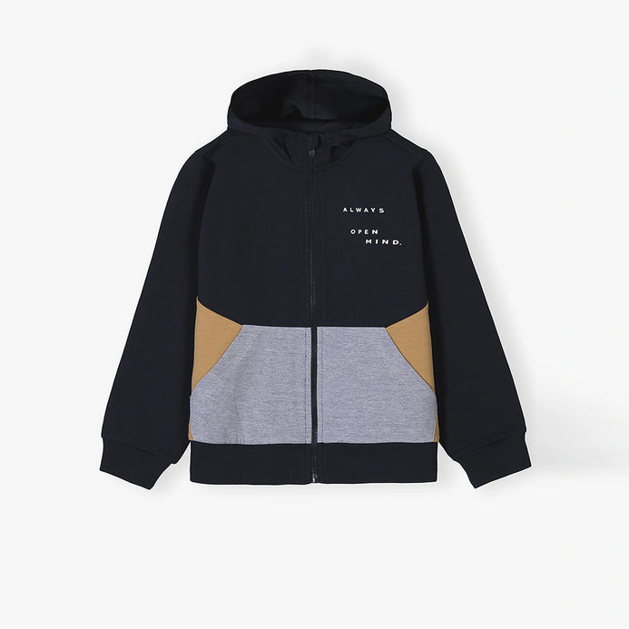 LS Always Open Minded Color Block Blue Terry Zipper Hoodie 12368