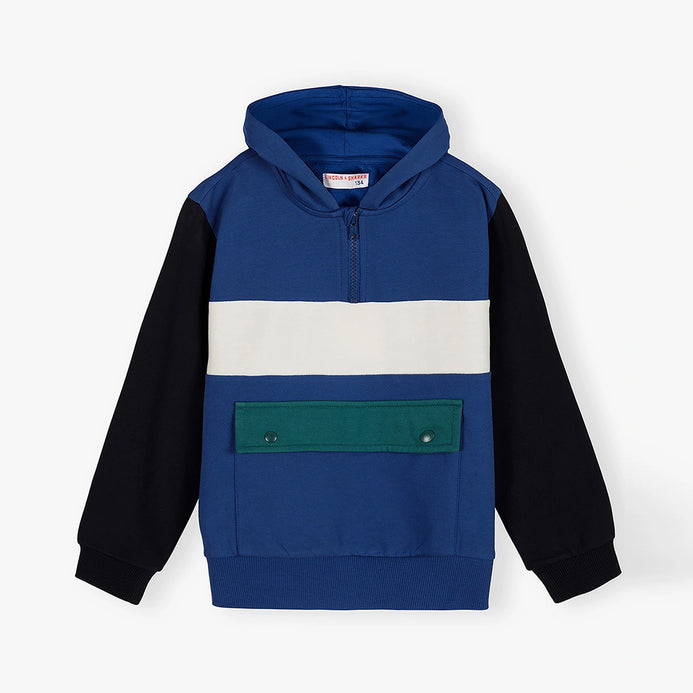 LS Color Block Front Pocket Blue Terry Hoodie 12373