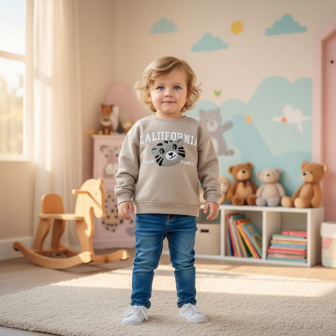 MNG California Team Funny With Tiger Face Embroided Fleece Sweatshirt 14332