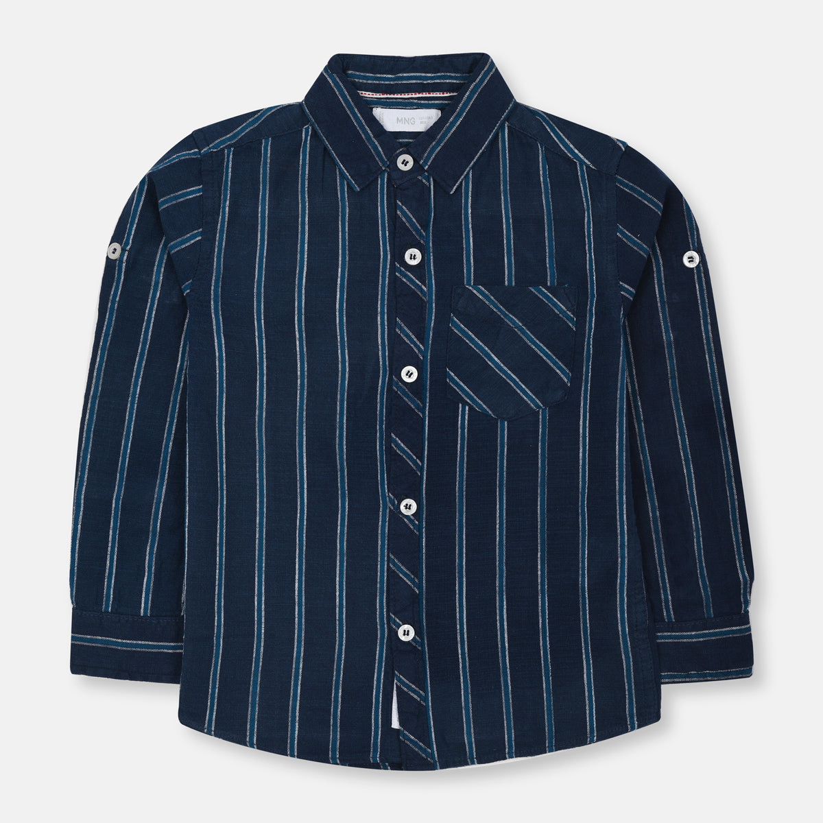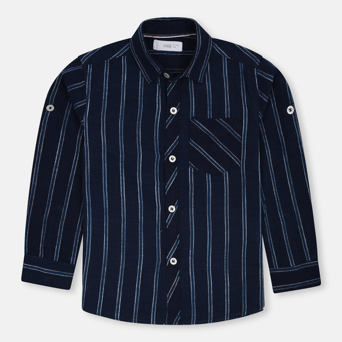 MNG Double White Blue Lines Navy Blue Casual Shirts 10799