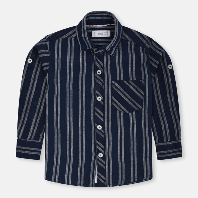 MNG Double White Lines Navy Blue Casual Shirt 10803