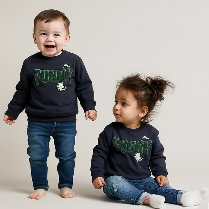 MNG Funny Embroided & Lion With Flag Light Fleece Navy Blue Sweatshirt 14237