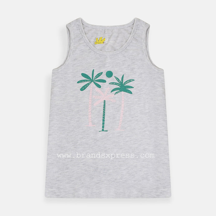 OK Palm Trees Printed Light Grey Tank Top 4784