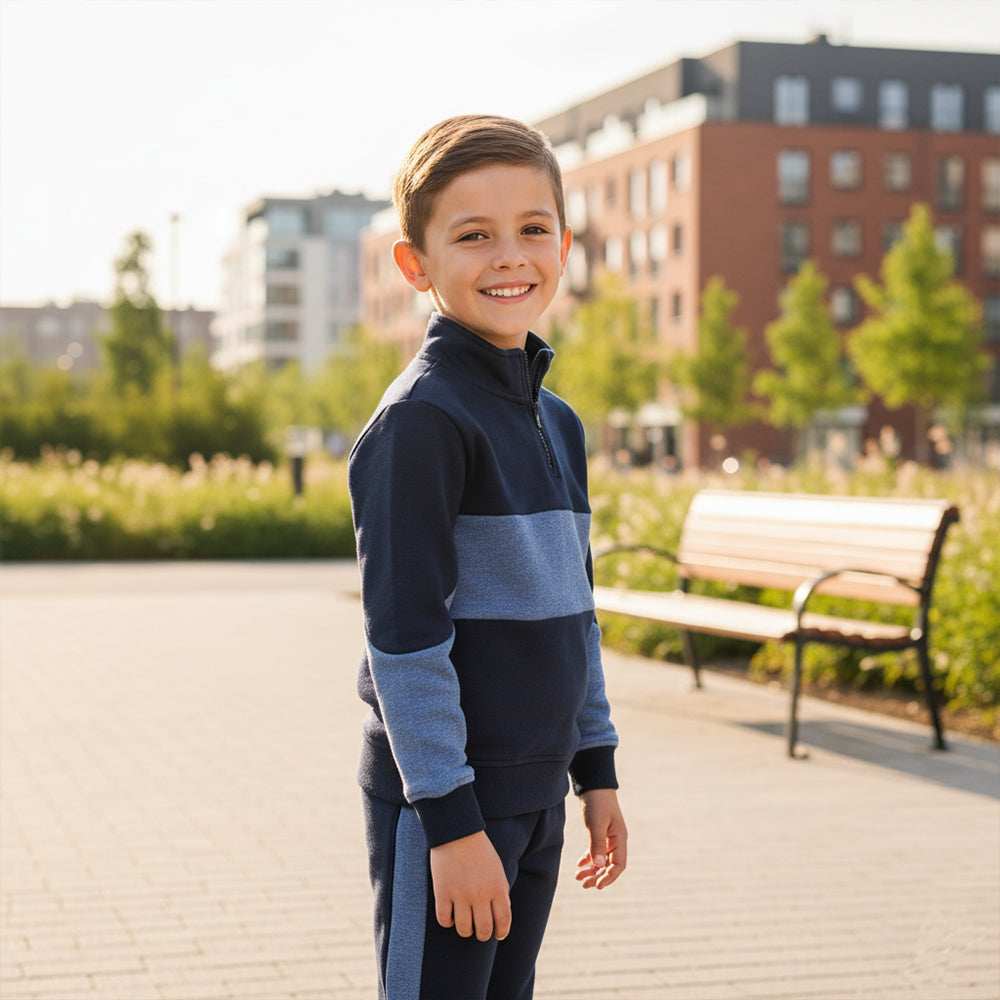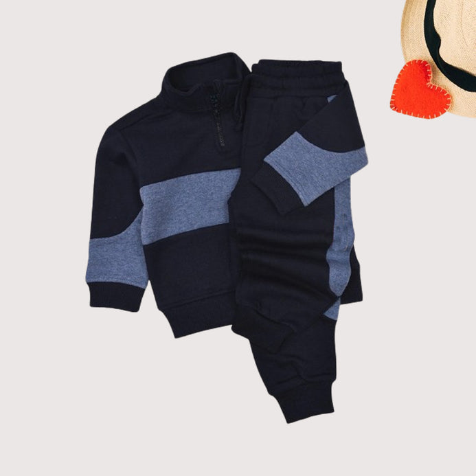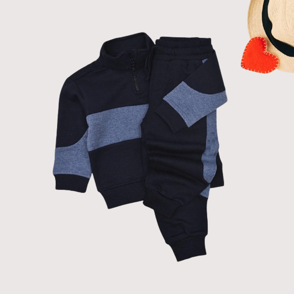 PRMK Blue Block Style Mock Neck Fleece Upper & Trouser 2 Piece Set 13414