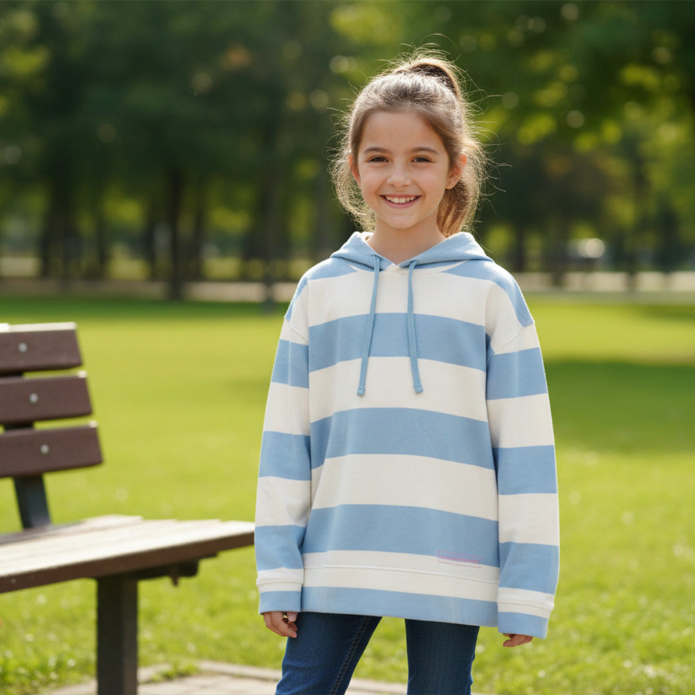 SFR Follow Your Heart Applic Sky Blue & White Big Stripes Fleece Hoodie 14556