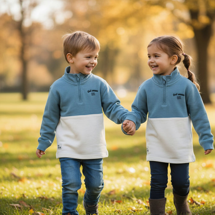 SFR Sail Reason Embroided Front Zip Cadet Blue & White quarter Zip Terry Sweatshirt 14551