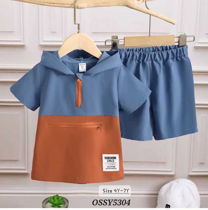 Shein Sunny Child Hoodie Style Contrast Half Slevees Shirt With Shorts 2 Piece Set 12927