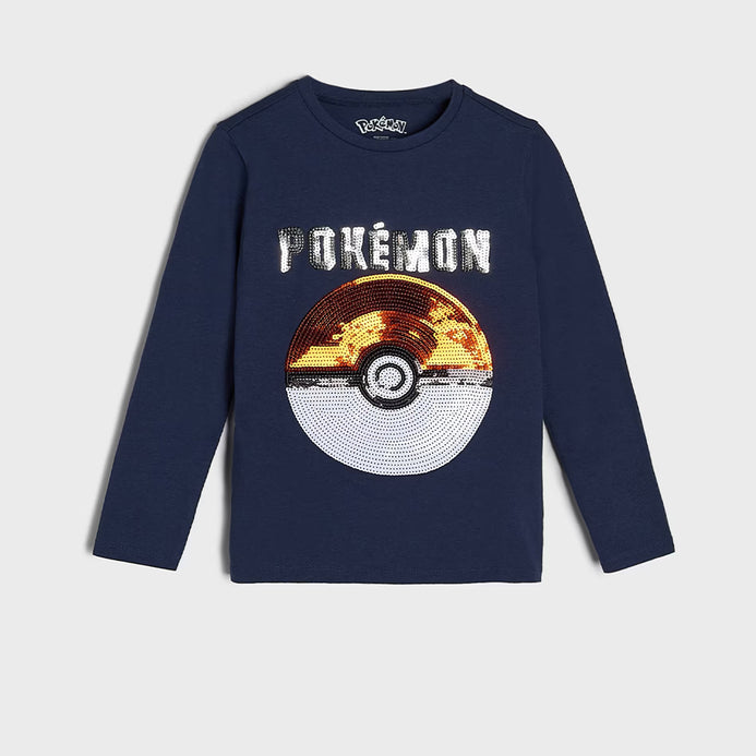 SY Pokemon Sequin Full Sleeves Navy Blue T-Shirt 11928