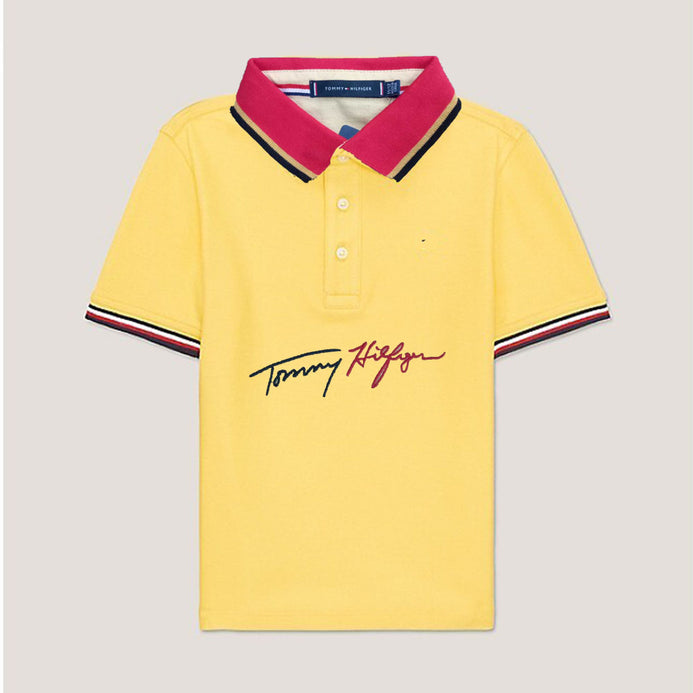 TH Embroided Contrast Collar Pale Yellow Polo 13032