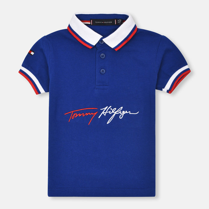TH Embroided Contrast Collar Royal Blue Polo T-Shirt 13029