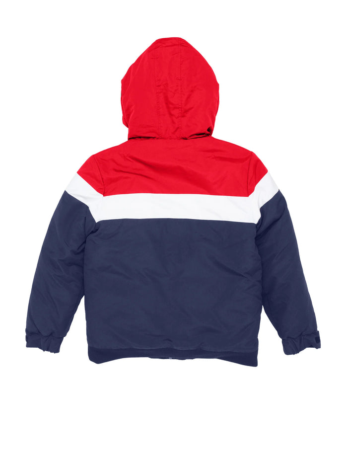 U Color Block Placket Red With Blue Puffer Jacket 11784