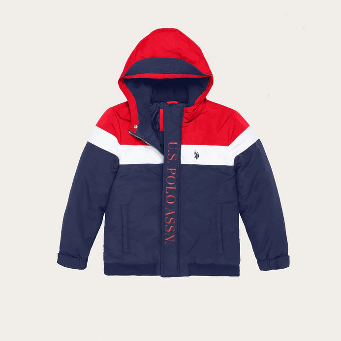 This warm, handsome U.S. Polo Assn. jacket is the perfect addition to your wardrobe to help take on winter in style. The water resistant feature will help keep you warm and dry for any activity you have planned. The hood feature will also help ensure protection from the harsh weather and wind that winter can bring.