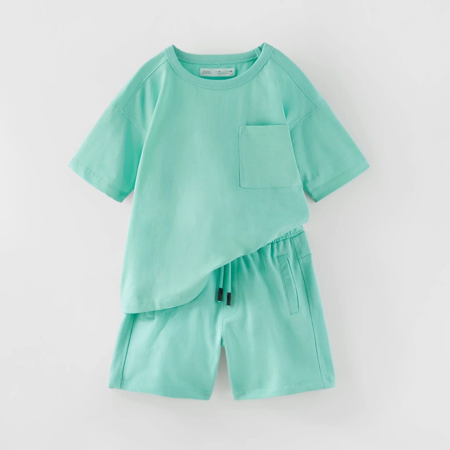 ZR Pocket Style Sea Green Shirt With Shorts 2 Piece Set 12896