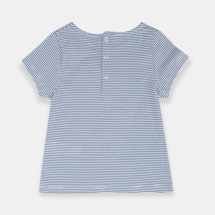 - OBB Applic Flower White-Blue Stripes Top 1376