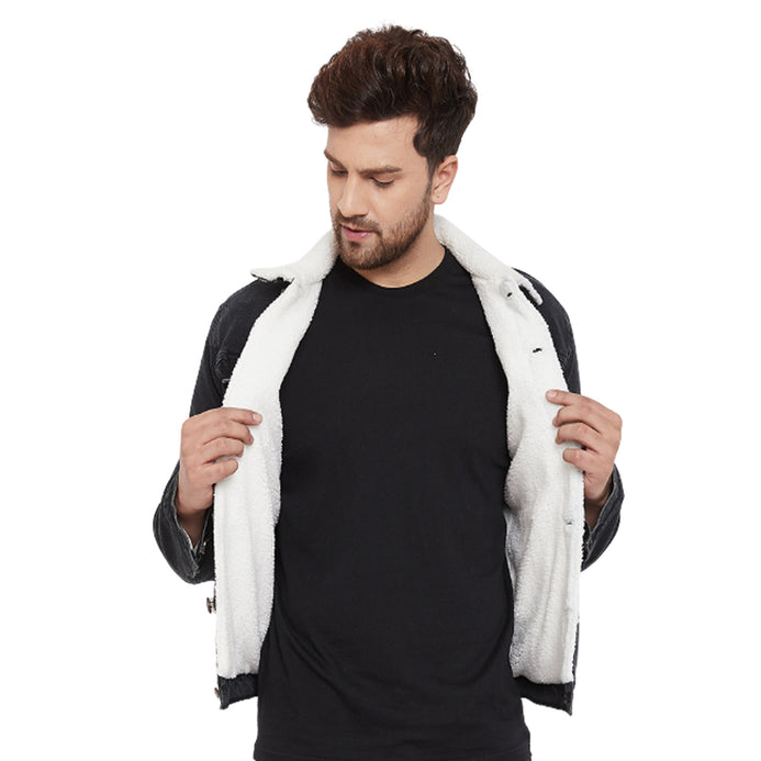 ZA Full Furr Plain Grayish Black Denim Jacket 8027