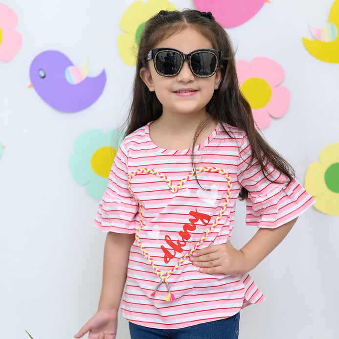- DKY Braid Heart Pink Top With Blue Denim 2 Piece Set 4202