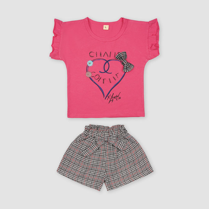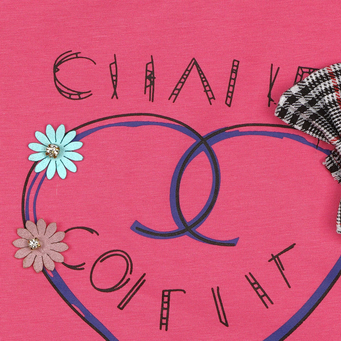 - MNXY Shocking Pink Bow Heart Print 2 Piece Set 2273