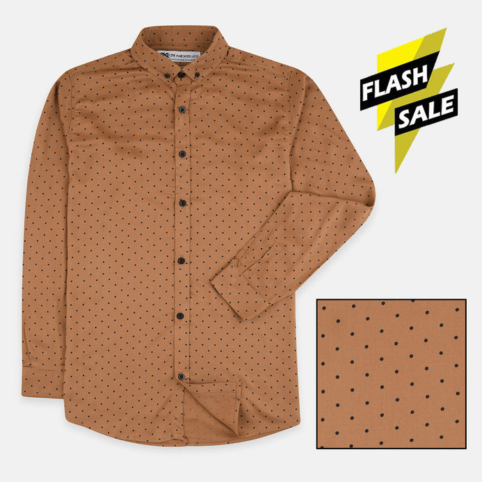 OXN Black Polka Dots Brown Casual Shirt 4190