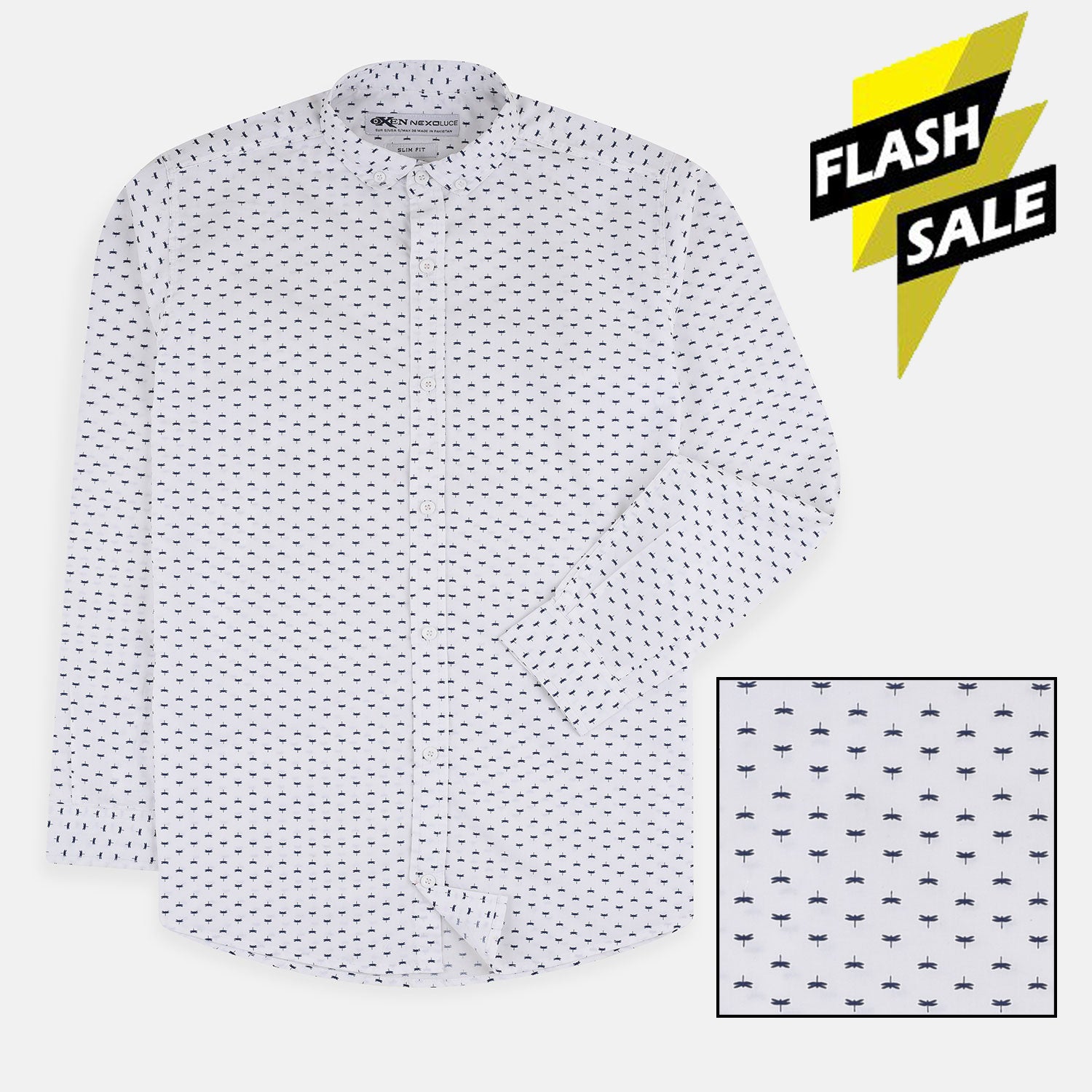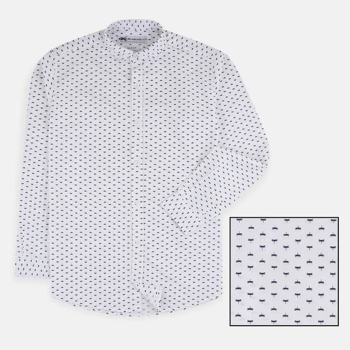 OXN Dragon Flyer Print White Casual Shirt 4185