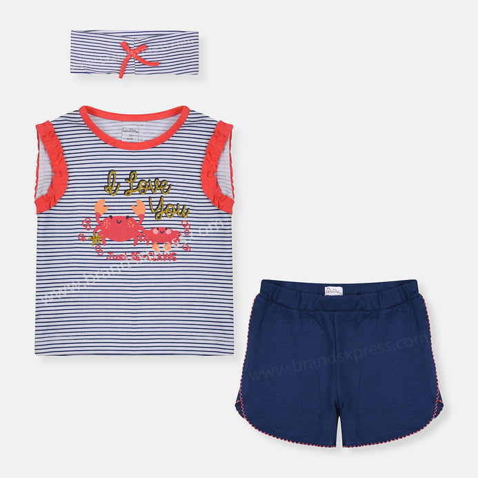 QLT Love You Stripe Top With Contrast Shorts & Head Band 3 Piece Set 8792