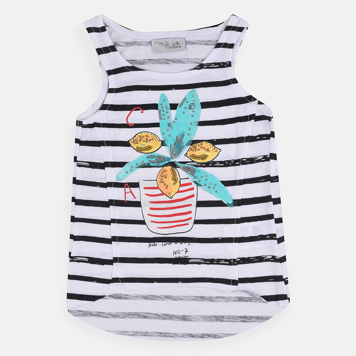 SS Sequence Lemon Jar Black Stripe Rough Bottom Sleeveless Top 4059
