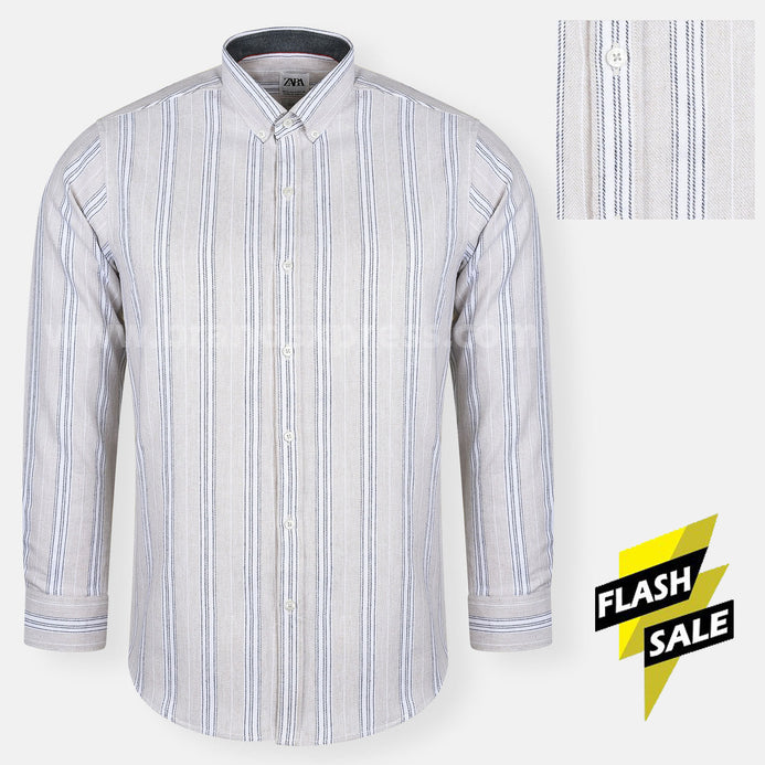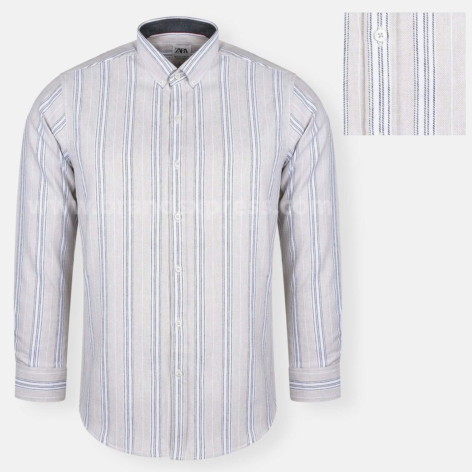 - ZR Thin Line Flannel Sand Brown Casual Shirt 8136
