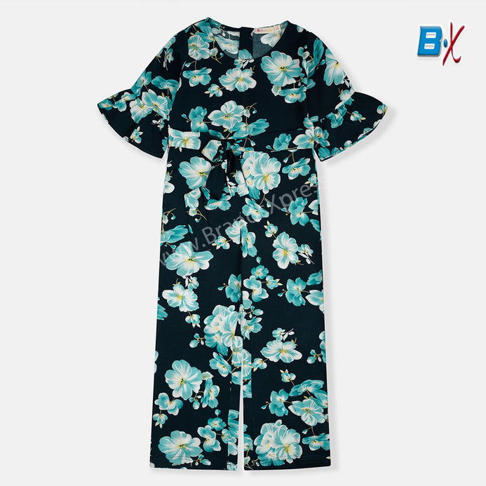 B.X Teal Flowers Style Sleeves Lenan Navy Blue JumpSuite 9366