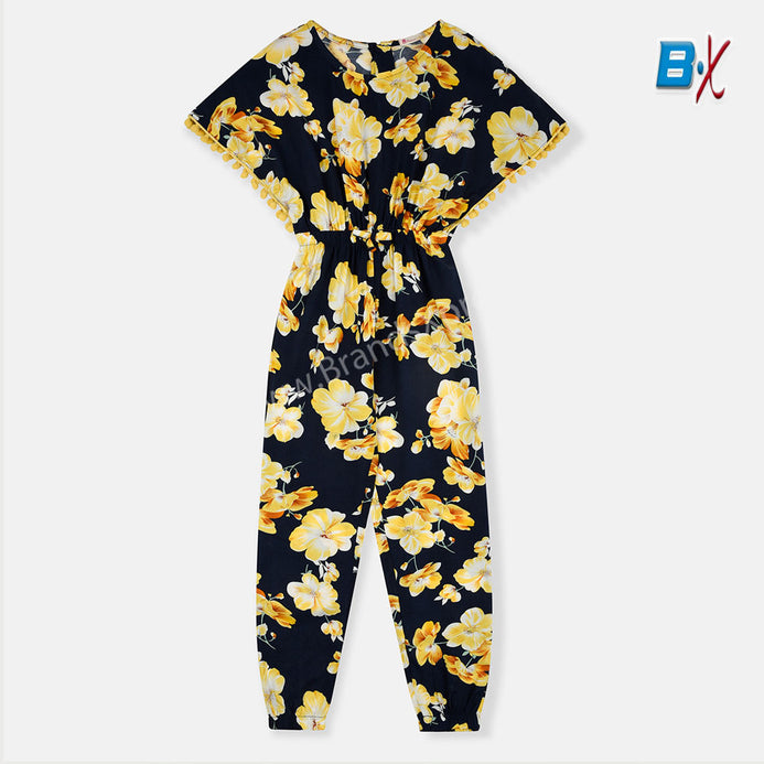 B.X Yellow Flowers Style Sleeves lenan Dark Blue Jump Suit 9361