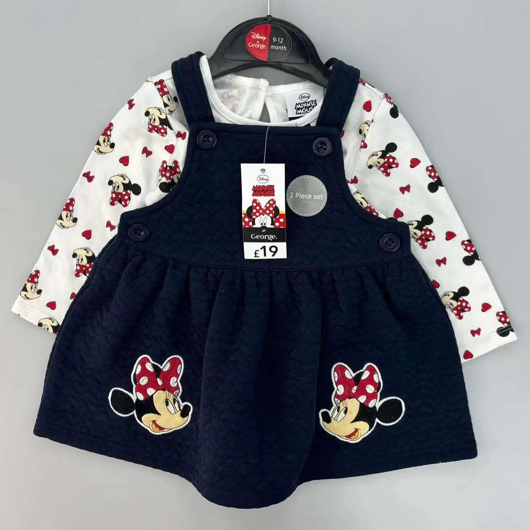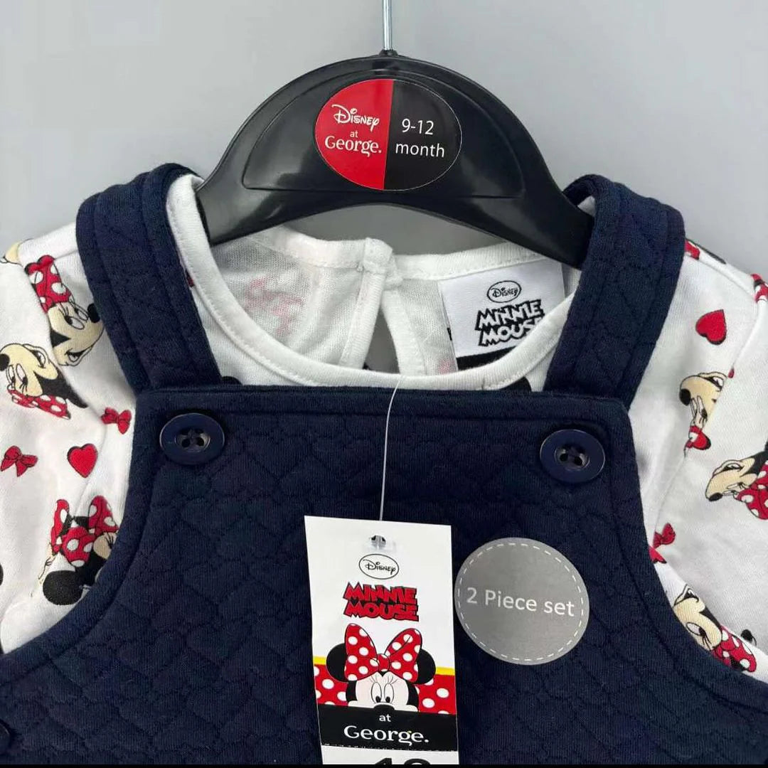 - GRG Minnie Mouse Applic Blue Dungaree with Print T-Shirt 2 Piece Set 13331