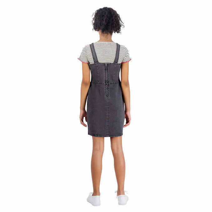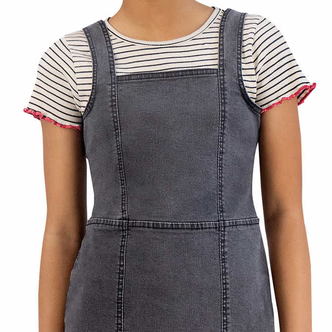STVE Madden Striped Top With Grey denim Dungaree 2 Piece Set 13664