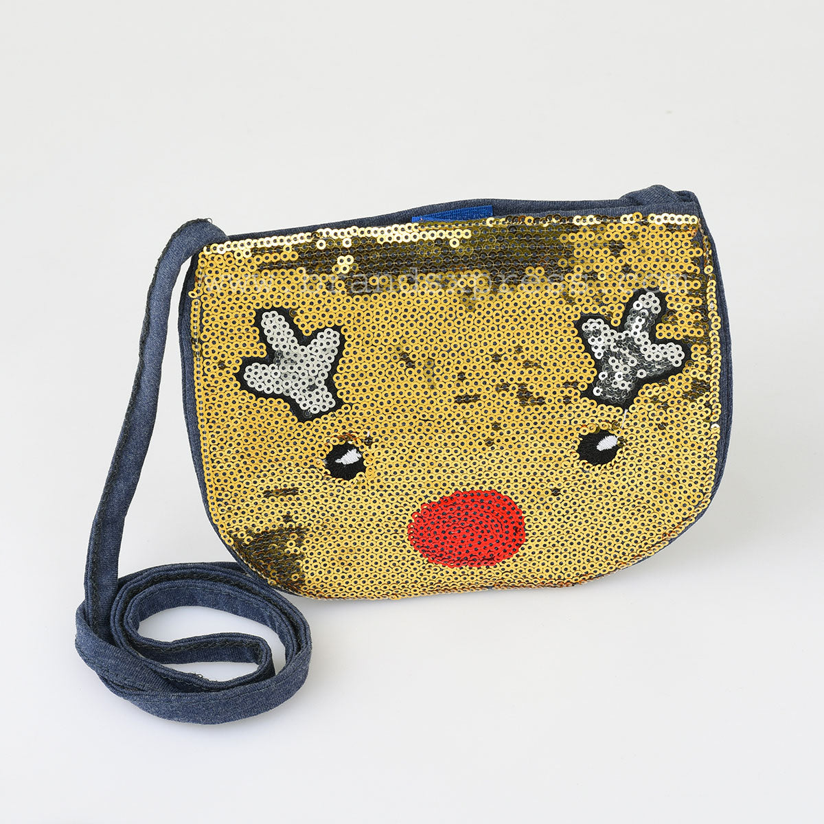 BZ Golden Sequence Deer Face Milinge Blue Mini Purse 6050