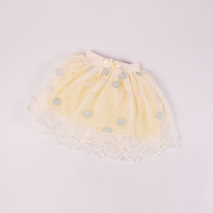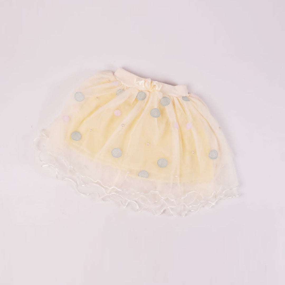 - KEFS Color Embroided Dots Softs Yellow Net Skirt 10861
