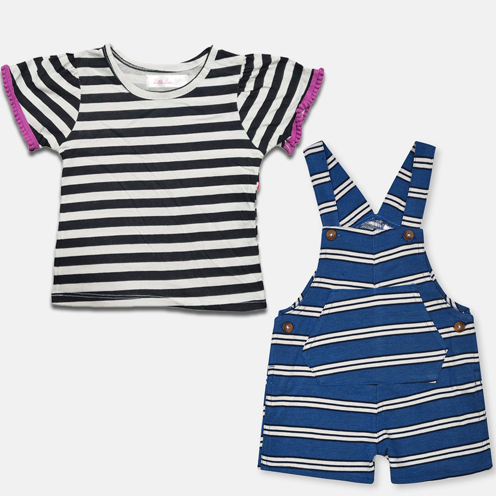 LL White & Black Striped Top with Cadet Blue Dungaree 2 Piece Set 12881