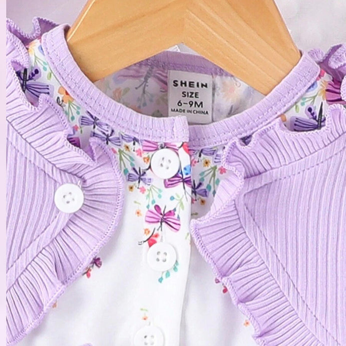- SHEN Kids Butterfly Print Bow Style With Ruffle Shawl Frock 13990