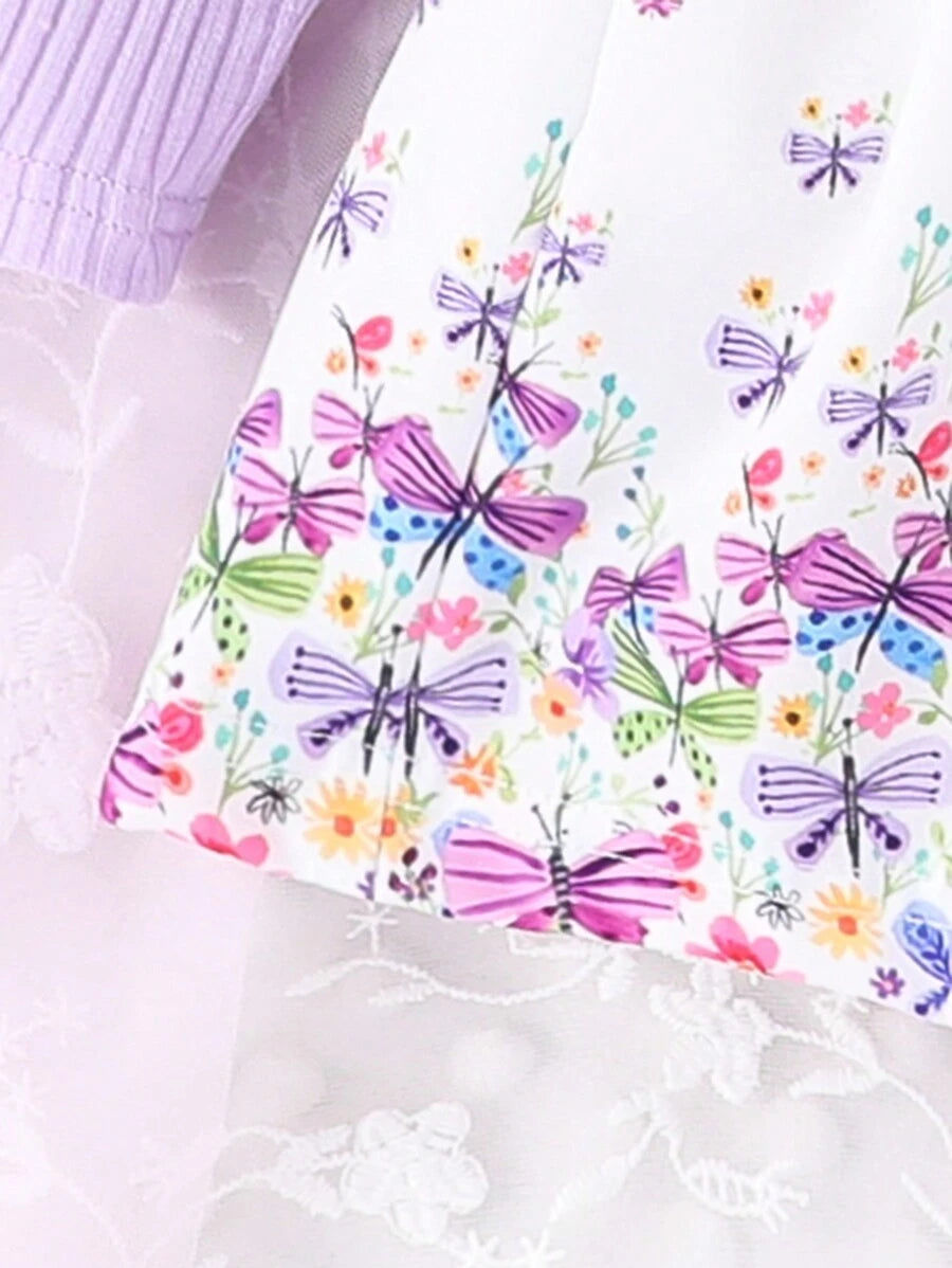 SHEN Kids Butterfly Print Bow Style With Ruffle Shawl Frock 13990