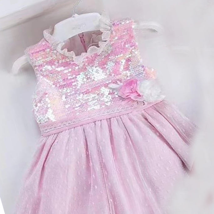 - TSNO Pink Sequin & Flower Pink Frock 10739