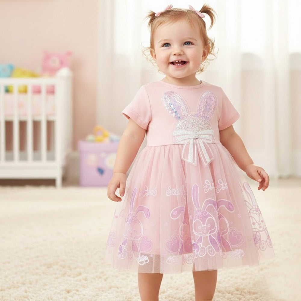 YJTX Rabbit Ears Sequim Pink Frock 13109