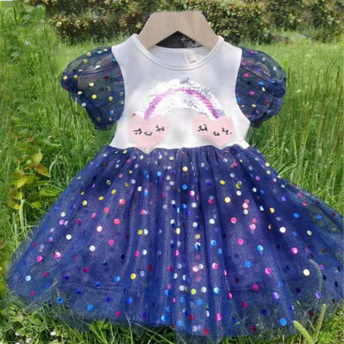 - YJTX Sequin Hearts Rainbow White with Navy Frock 13099