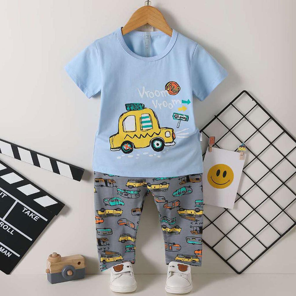 2 Piece Set Car Print Vroom Vroom Sky Blue 1843