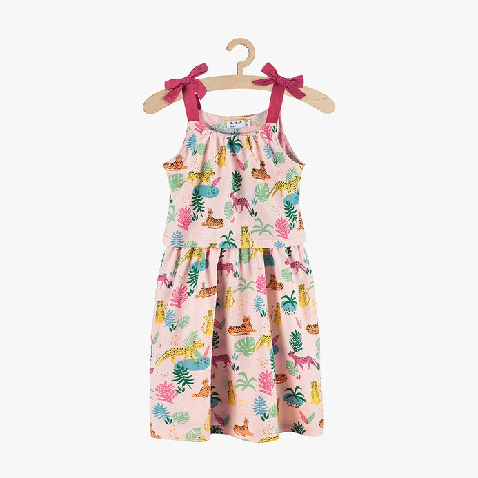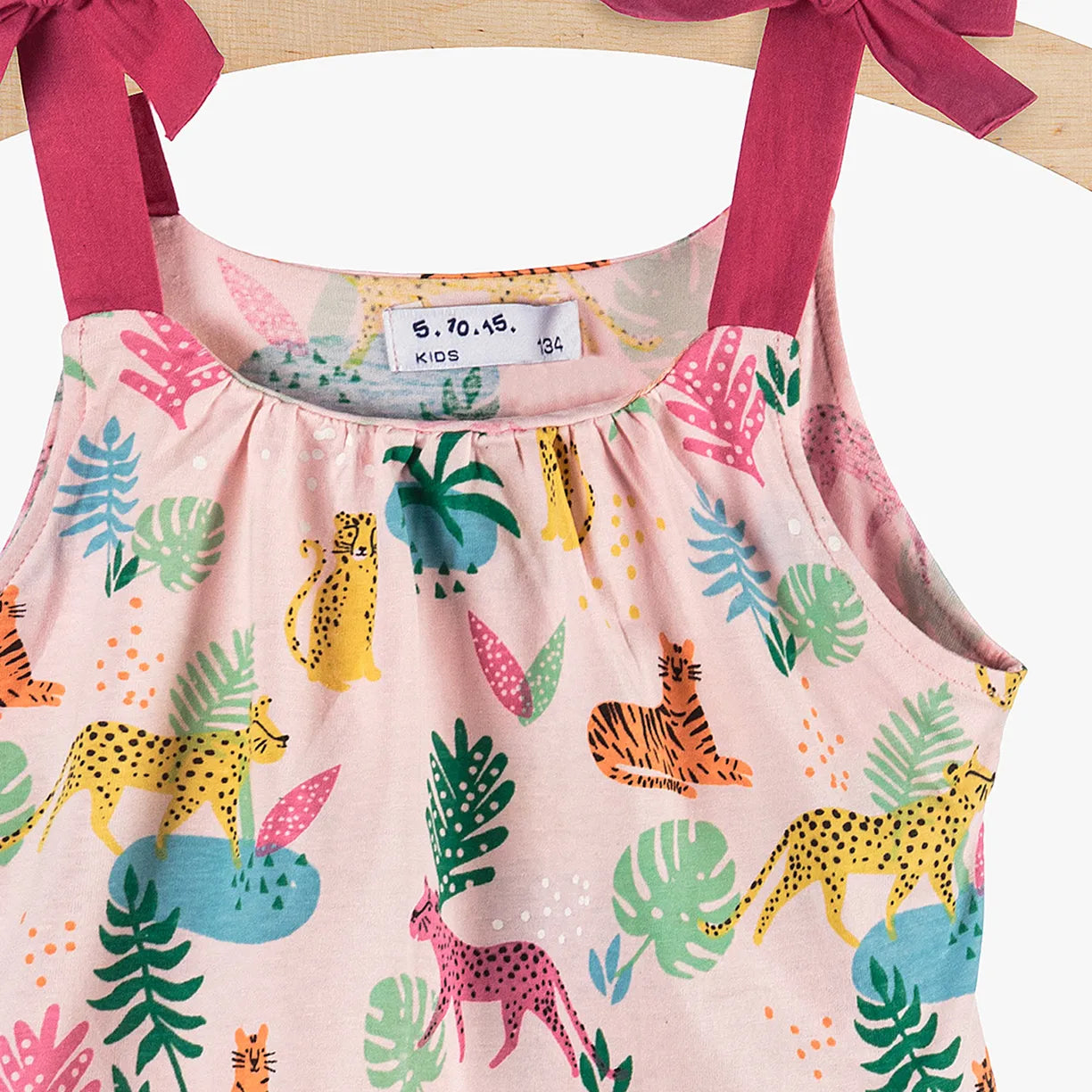 5.10.15 All Over Tigars & Tress Print Half Sleeveless Pink Frock 13532