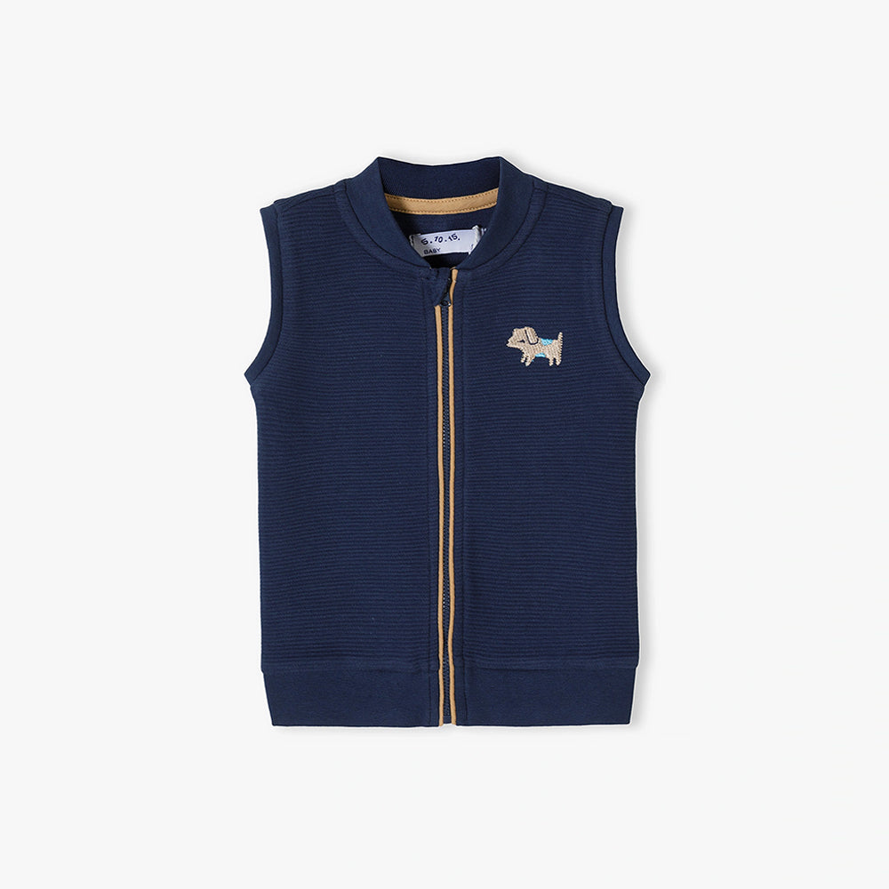 5.10.15 Dog Embroided Ottoman Sleeveless Mock Neck Zipper 12393
