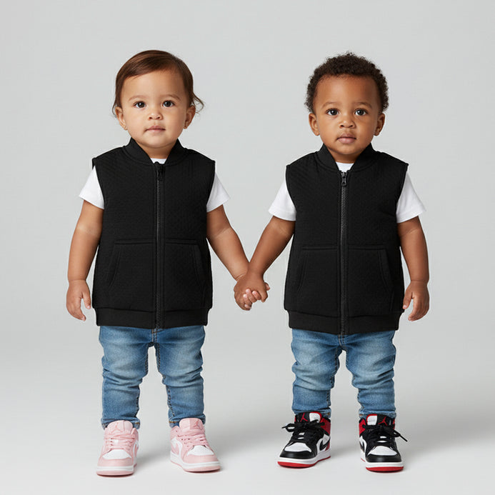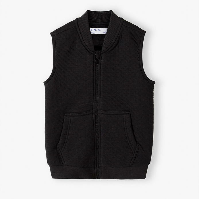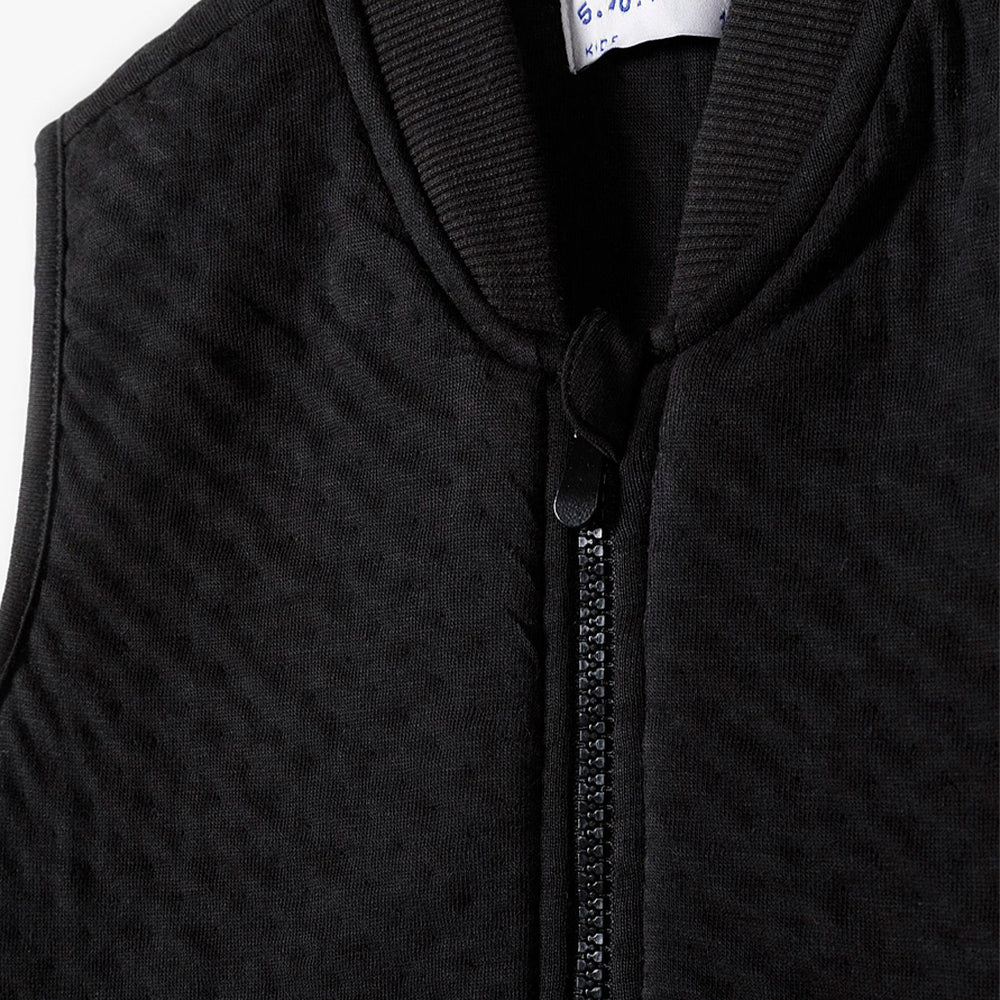 5.10.15 Mock Neck Quilted Front Pocket Black Sleeveless Zipper 14605