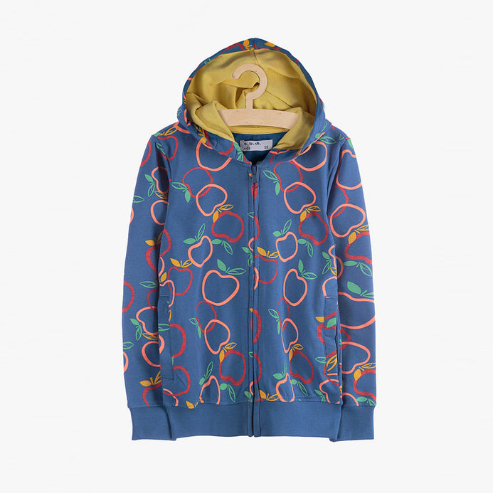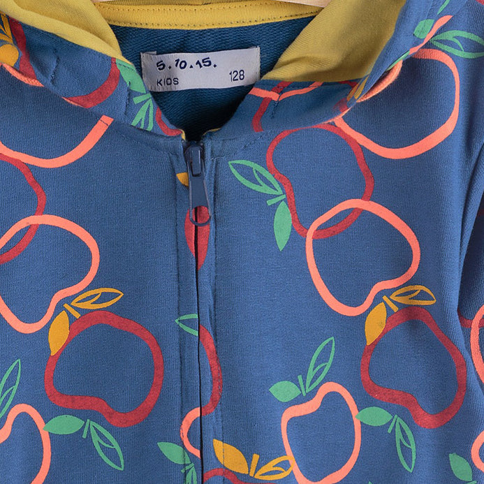 5.10.15 Apple Print Blue Zipper Hoodie 8420