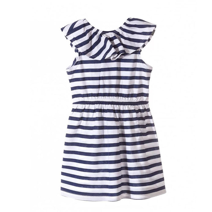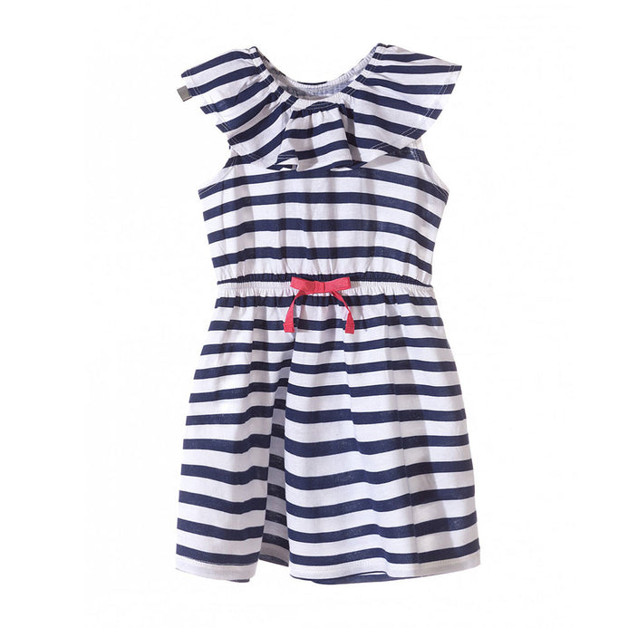 51015 Neck Frill Blue And White Stripe Dress 3545
