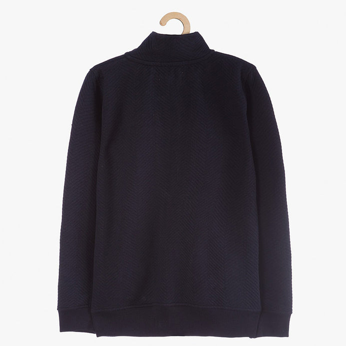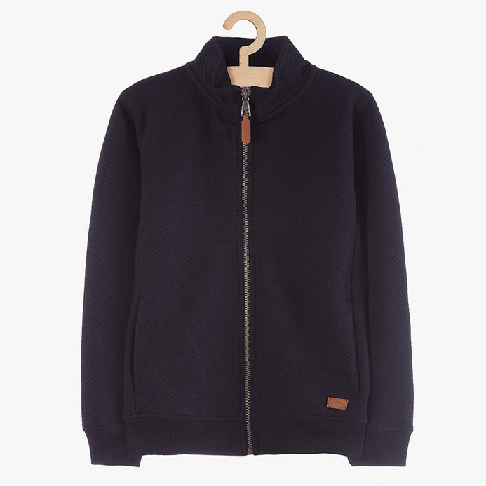 51015 Quilted Mock Neck Navy Blue Zipper Hoodie 8438