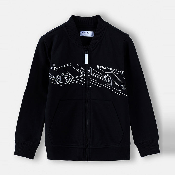 51015 Trophy Cars Print Black Mock Neck Zipper 8465