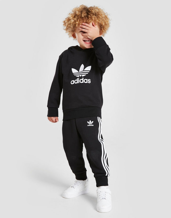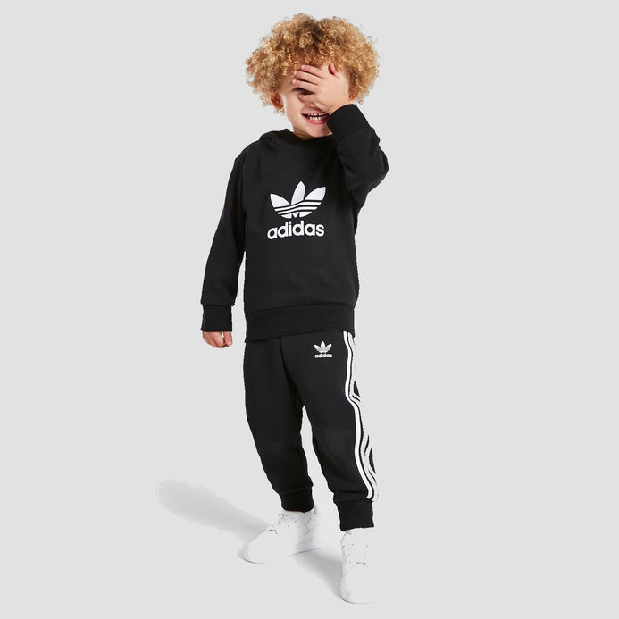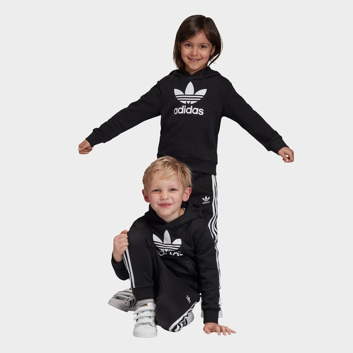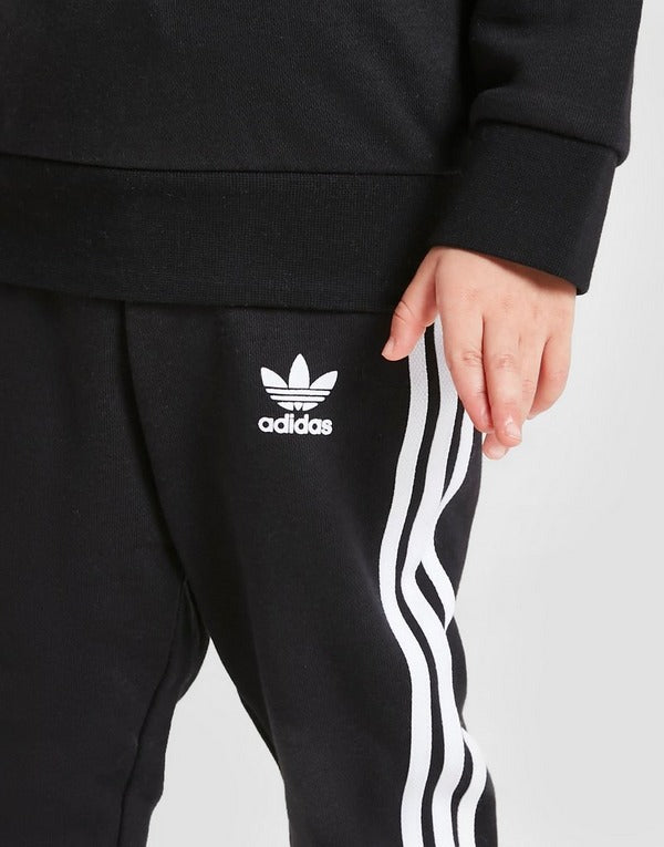 A timeless sport look made just for kids. This track suit has3-Stripes on the sleeves and pant legs for authentic adidas Originals style. For a modern touch, the soft, satiny tricot fabric is made from recycled fibres.`